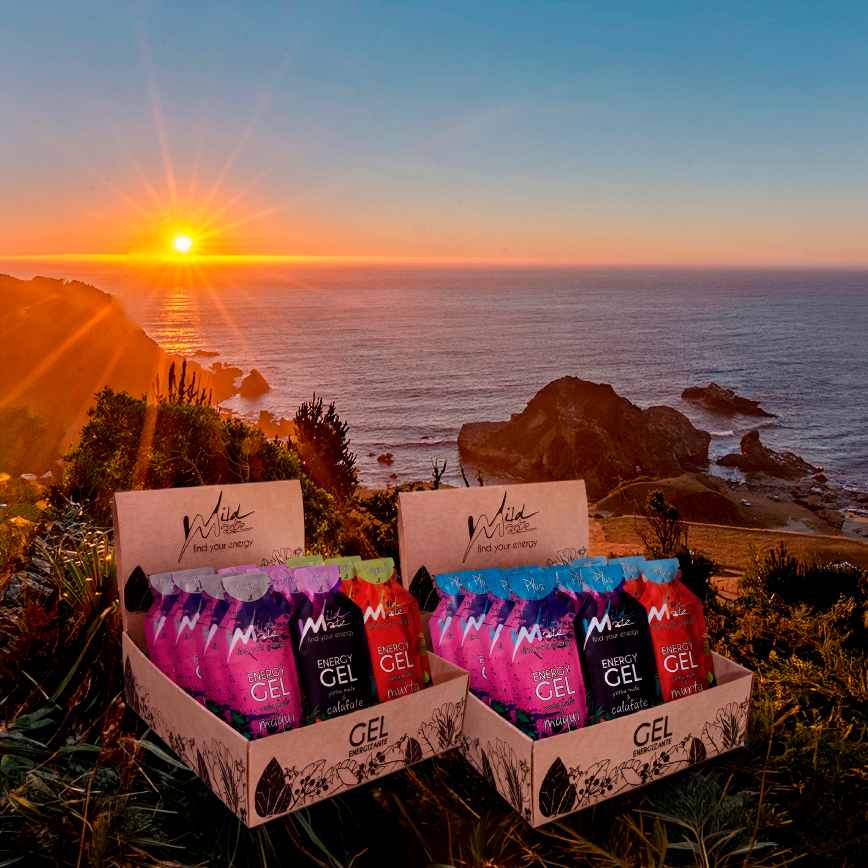 4 u 8 Geles energizantes de cada línea: Plus y Original y de cada uno de nuestros frutos: 🟣Maqui, 🔴Murta, 🔵Calafate.