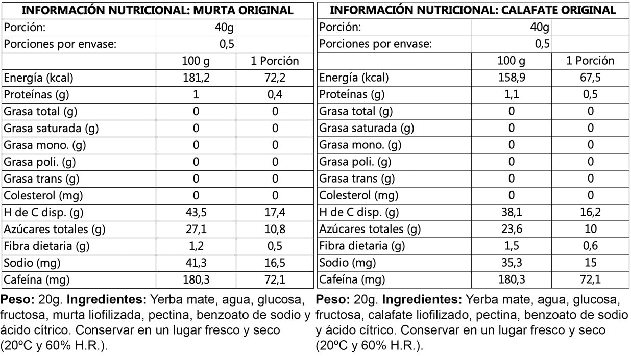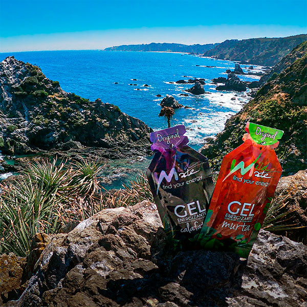 Wildmate Pack Calafate y Murta: Geles energizantes de 20 gramos sabor 🔵 Calafate (Berberis microphylla, sin. Berberis buxifolia), arbusto nativo de la Patagonia. Y 🔴 Murta (Ugni molinae), arbusto nativo de Chile. Ambos frutos son comestibles y de los más característicos y conocidos del sur de Chile.