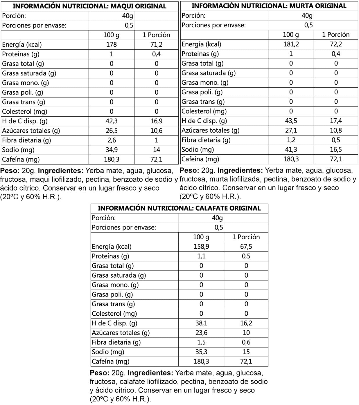 Original: Esta línea Original contiene glucosa y fructosa en proporción 2:1 y 10 mg de cafeína por porción (además de los otros compuestos activos de la yerba mate). Este gel esta diseñado para aquellas personas que esporádicamente realizan alguna actividad física o necesitan un boost de energía extra en sus actividades. Si disfrutas de largas caminatas con tu familia, te vas de trekking cada fin de semana que puedes, tienes un trabajo con un horario demandante o necesitas un shot de energía extra para tus estudios ¡Éste gel está diseñado para tí!